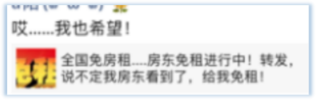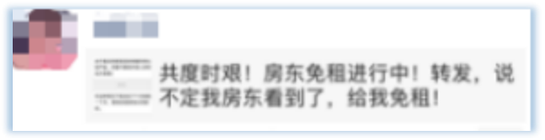 也有一些租客看到自家房东“没吭声”,就将免租、减租的倡议或新闻转发在朋友圈里,希望“不经意间”让房东看到。更有租客见免租无望,直接将倡议、新闻发给房东,主动要求对方减免租金。
