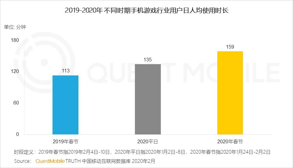 (QuestMobile数据显示,近期用户对手机游戏的需求有所增加,用户规模较平日增长30%,日人均使用时长增长17.8%)