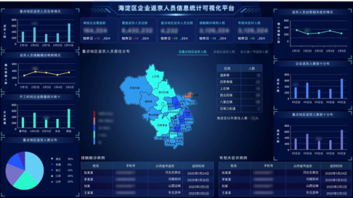 在接到北京市海淀区政府的需求后,致远互联的一支小分队紧急上马了一套“海淀防疫上报管理平台”。初四接到任务,初五正式上线,每天数据从各个街道、辖区内的企事业单位“蜂拥”而至,系统将整个海淀区的人员流动情况汇总成一幅实时动态图,一目了然。