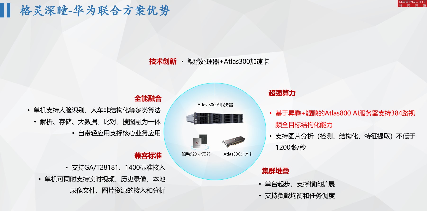 http://si1.go2yd.com/get-image/0f0Ysv8IeP2正是基于这样的思考,格灵深瞳选择了鲲鹏处理器+Atlas 300加速卡,结合自创的业界领先的全目标(人脸、人体、车辆、非机动车)结构化算法,搭建了自己的平台,通过系统调度、推理流水线优化、内存优化,最终实现单卡支持48路视频结构化,64路人脸识别。单机可以提供实现384路极致高密视频实时分析。这其中Atlas 300 AI加速卡是一个“关键先生”,基于昇腾310和910 AI处理器的Atlas 300 AI加速卡提供多种数据精度,适用于人工智能训练和推理场景。