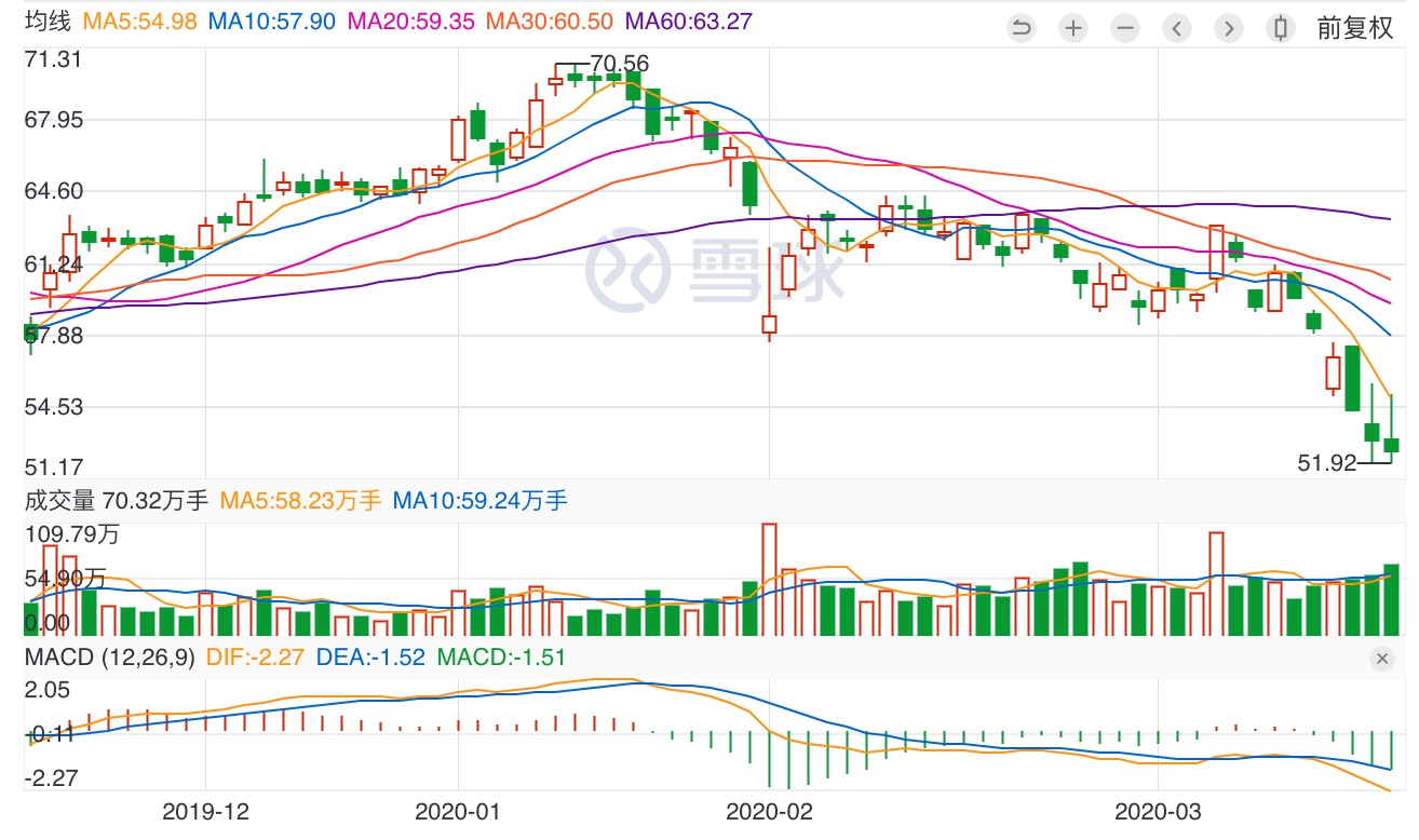 但是今年一季度对董明珠和格力电器或将是一个巨大的考验。疫情影响之下,整个空调行业都陷入停滞,从1月中旬至今格力电器的股价已经下跌超过5分之一(目前为50.30元)。