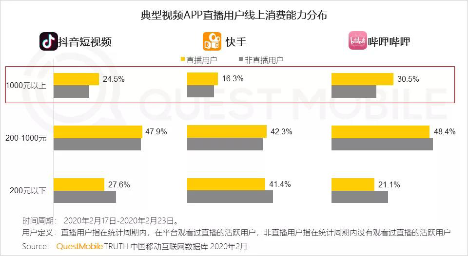 直播在进化,但不同平台的调性决定平以的营销价值。从QuestMobile的数据要以看出,抖音用户消费能力相对比较强,并且这是一群追求美好生活的年轻人。对于他们而言,直播3.0更能迎得他们的喜爱,而商家的全链路营销在这里也更有发挥的空间。