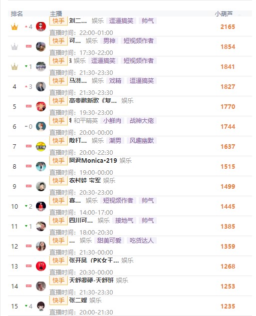 如果单从流量上来看抖音和快手无疑是要大幅领先斗鱼的,但各自庞大的用户基础并没有帮助它们在直播的跨领域竞争中所向披靡。根据小葫芦的数据显示,快手排名前15位的主播里均为娱乐秀场型主播,没有一名游戏主播。这种相对单一的情况背后,是短视频平台碎片化、泛娱乐化风格的限制。