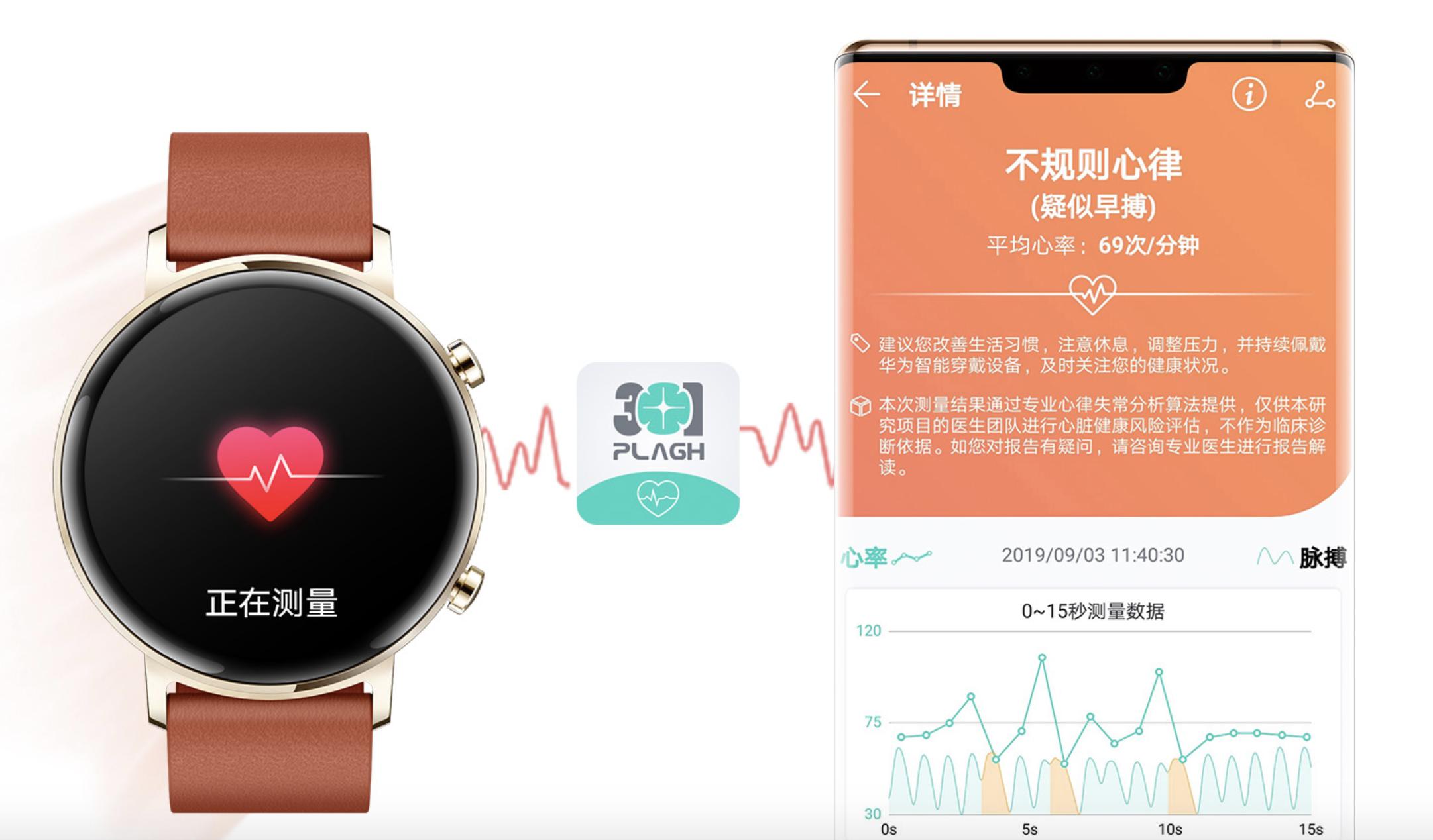 我们知道,心脏疾病发病率高,并且很多时候都是致命性的突发性疾病。而这些疾病早期会有症状出现,早发现、早控制、早治疗则可以大大降低疾病给人们造成的伤害。在上一代HUAWEI WATCH GT中比较吸引人的一个功能是加入301医院的心脏健康研究,支持房颤监测,之后研究继续深入,在HUAWEI WATCH GT 2中又增加了早搏筛查和房颤风险预测。
