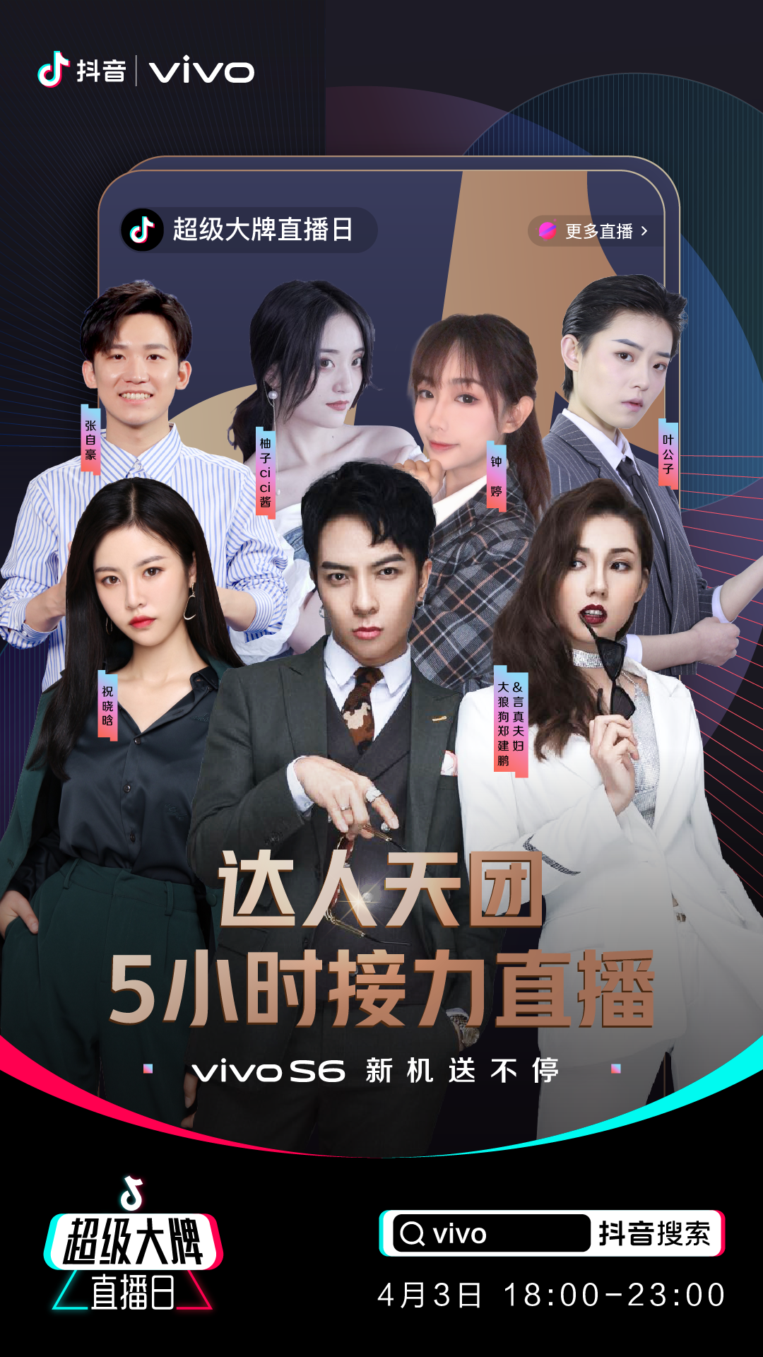 直播当日,由小霸王、祝晓晗、言真夫妇、钟婷等6位头部达人组成的流量天团直播接力、花式种草,不断刷新用户的观看体验。言真夫妇连线祝晓晗,发起朋友圈5G挑战,寻找朋友圈5G达人。该场直播1小时吸引457万粉丝观看,粉丝整齐刷屏“vivo S6 5G”......8场直播间累计观看人数900万+,单场直播最高25w人同时在线。