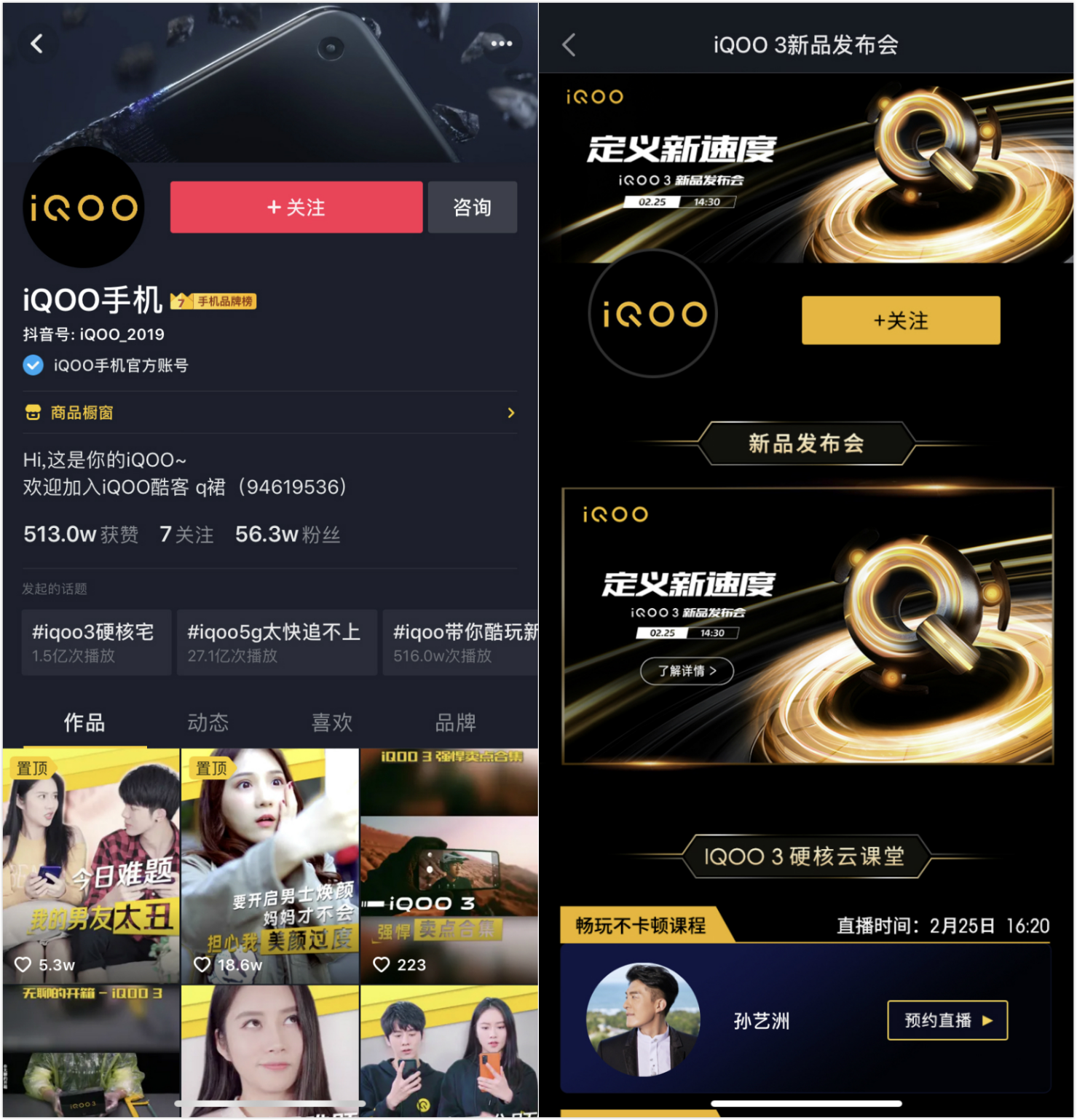 vivo的子品牌iQOO是一个典型的小众定位手机——侧重于游戏玩家用户群体。这样的产品更重视圈层传播,所以iQOO 3采取了“直播发布会+明星、达人直播互动”相结合的方式。