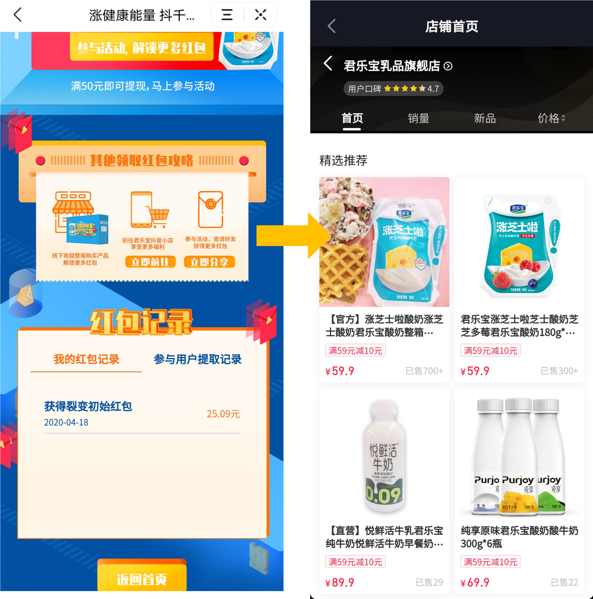 我们来看下君乐宝前段时间在抖音运作的一个营销动作。4月15日-5月24日,君乐宝在抖音发起“涨健康能量,抖千万红包”主题营销活动。活动打造出国内首个“微综艺”互动直播间——“芝士英雄-知识问答”直播,每周一场,连线各领域的明星、达人一起参与。在直播间内,用户不仅可以与各路明星花式互动,还能一边看直播一边领取红包,并参与线上互动答题,赢取优惠券等活动奖励。