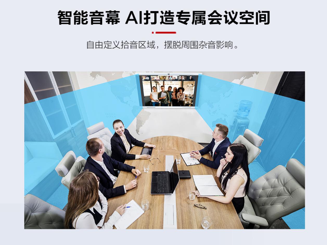 华为企业智慧屏具备智能音幕功能。在周围嘈杂的环境中,用户可以自定义拾音区域,区域范围之外的声音会被屏蔽掉,周围人的说话声和其他噪音会被屏蔽掉,视频会议中的与会方只会听到发言人的声音,声音更清晰,打造更好的会议效果。目前国内视频会议解决方案中只有华为实现这一功能,相信这也将引领未来的技术趋势。
