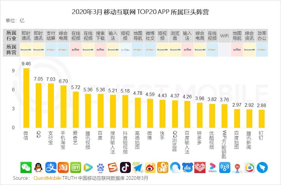 根据QuestMobile发布的《2020中国移动互联网春季大报告》显示,截止今年3月,爱奇艺和腾讯视频的月活用户数量分别为5.72亿和5.36亿,而优酷的月活用户为3.82亿,相距前面的两位差距较大。