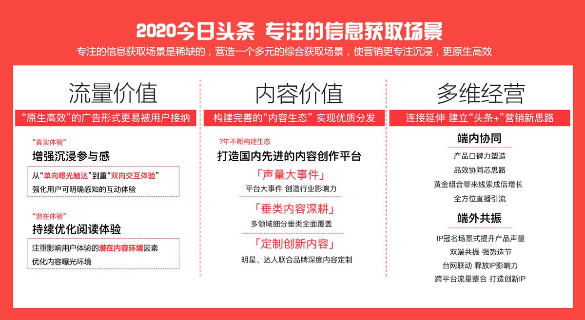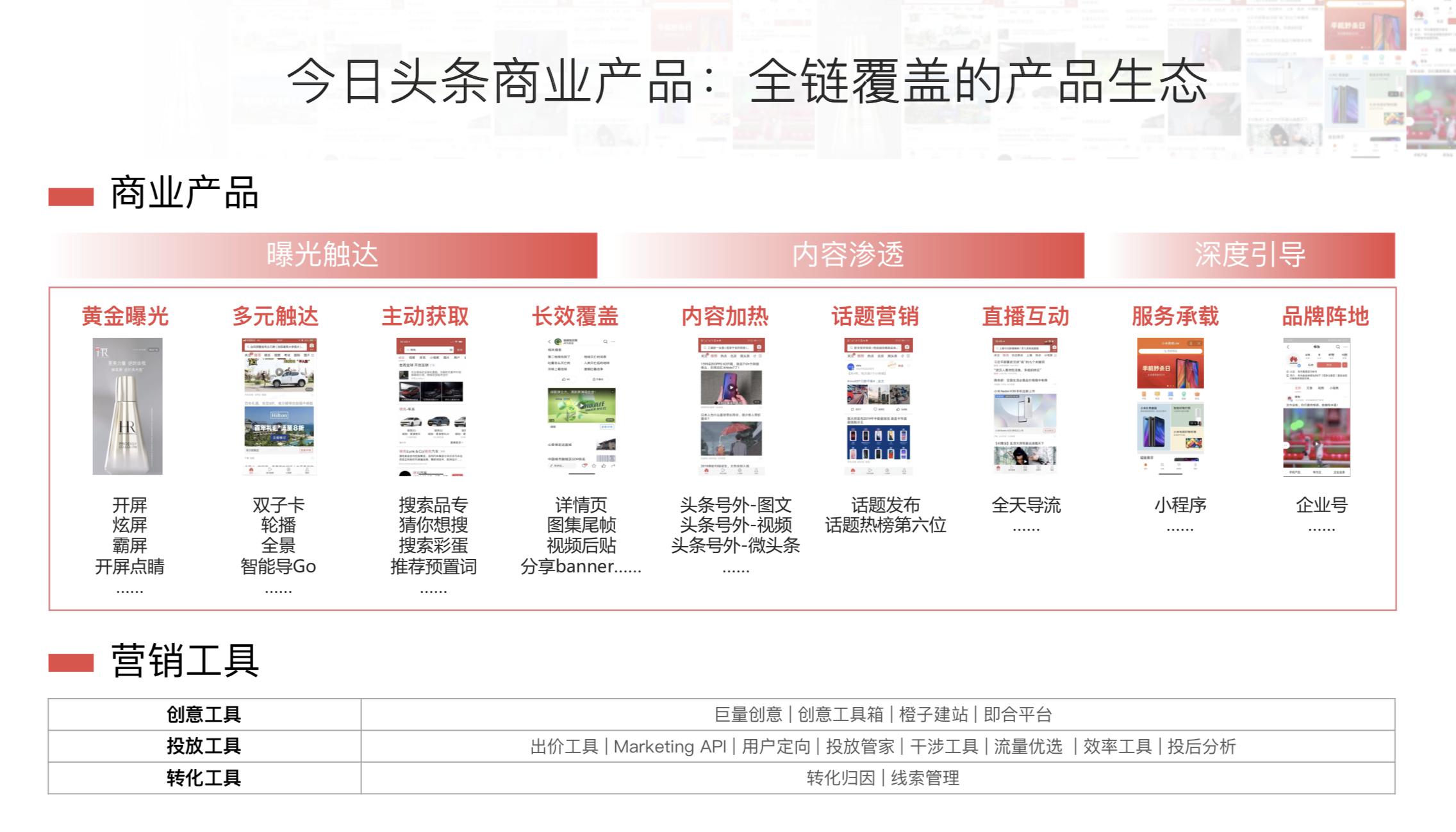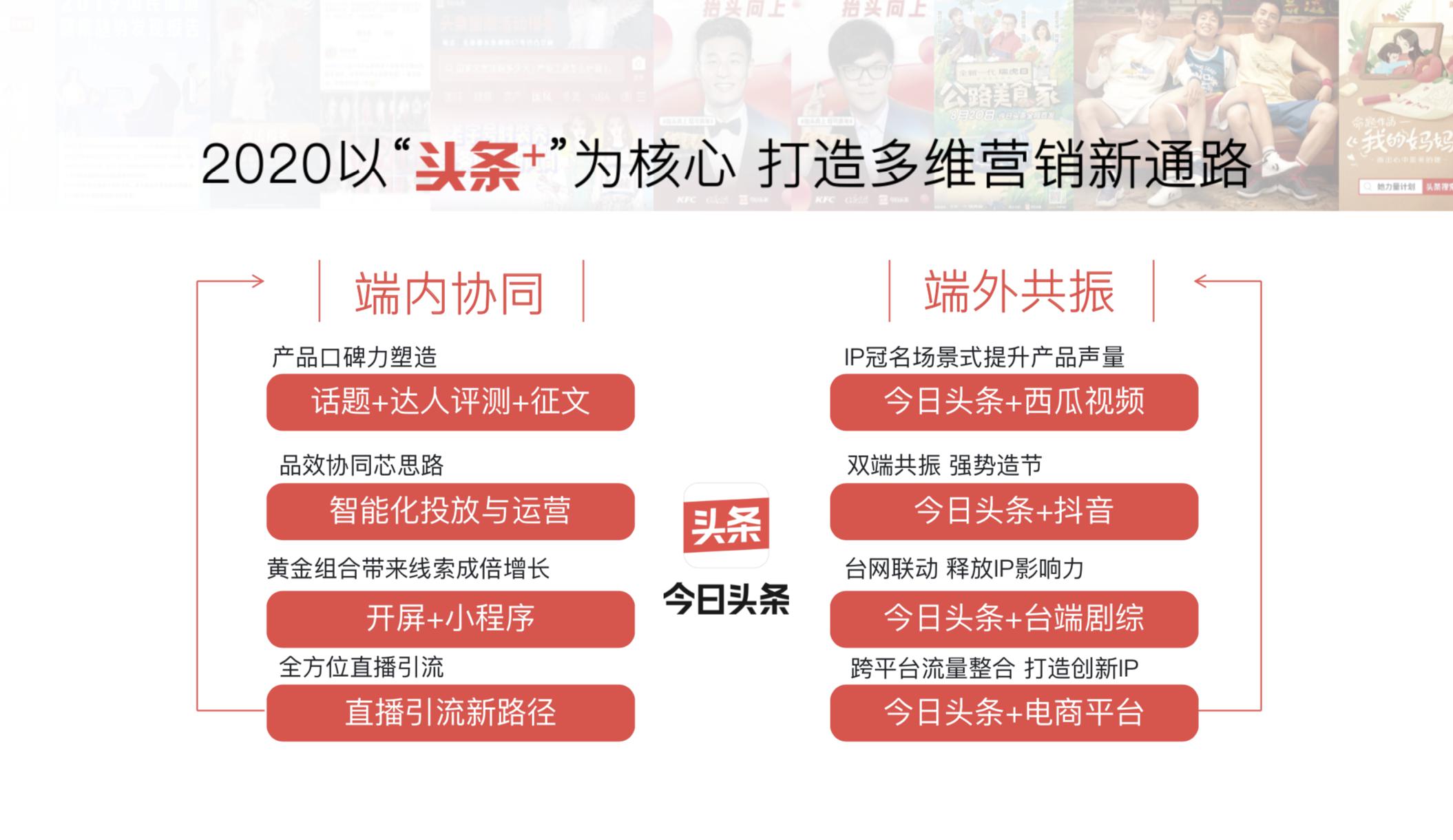 一是可以通过端内协同和端外共振(巨量引擎平台),打造多维营销通路。从这一项来看,这是今日头条优于其他内容平台的强项。