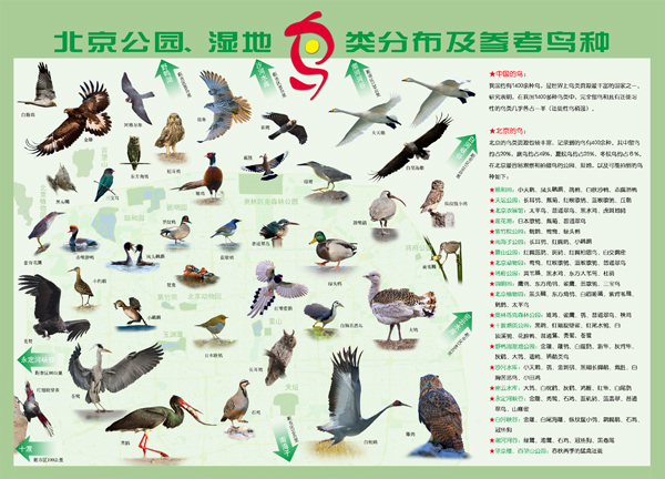 用于北京鸟类保护的宣传品——2015北京鸟类摄影公益台历《 燕京飞羽》,由摄影师谢建国、徐永春、黄进、李玉良、韩绍文、高庆和、宋晔和马晓光友情出片赞助,收录了摄影师在北京十渡、野鸭湖、永定河峡谷、颐和园、北京植物园、潮河河谷、圆明园、天坛、望京楼、密云水库、奥森公园、白河峡谷等北京12个主要观鸟拍鸟地拍摄的80张(种)鸟类图片。台历还附送了《北京主要公园、湿地鸟类分布图》。