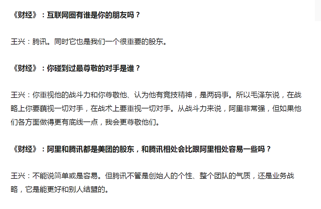 王兴认为互联网圈,腾讯是他的朋友。