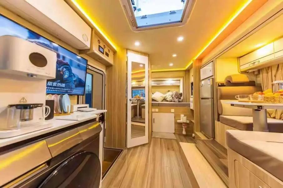在国内,一般大家所讨论的房车,都是指自行式C型车,带有会客区、简易厨房、盥洗室、卧室,装设大量橱柜,具有影音娱乐系统、空调、可转化桌沙发椅等设施。小米智能房车就是属于这个档次的。