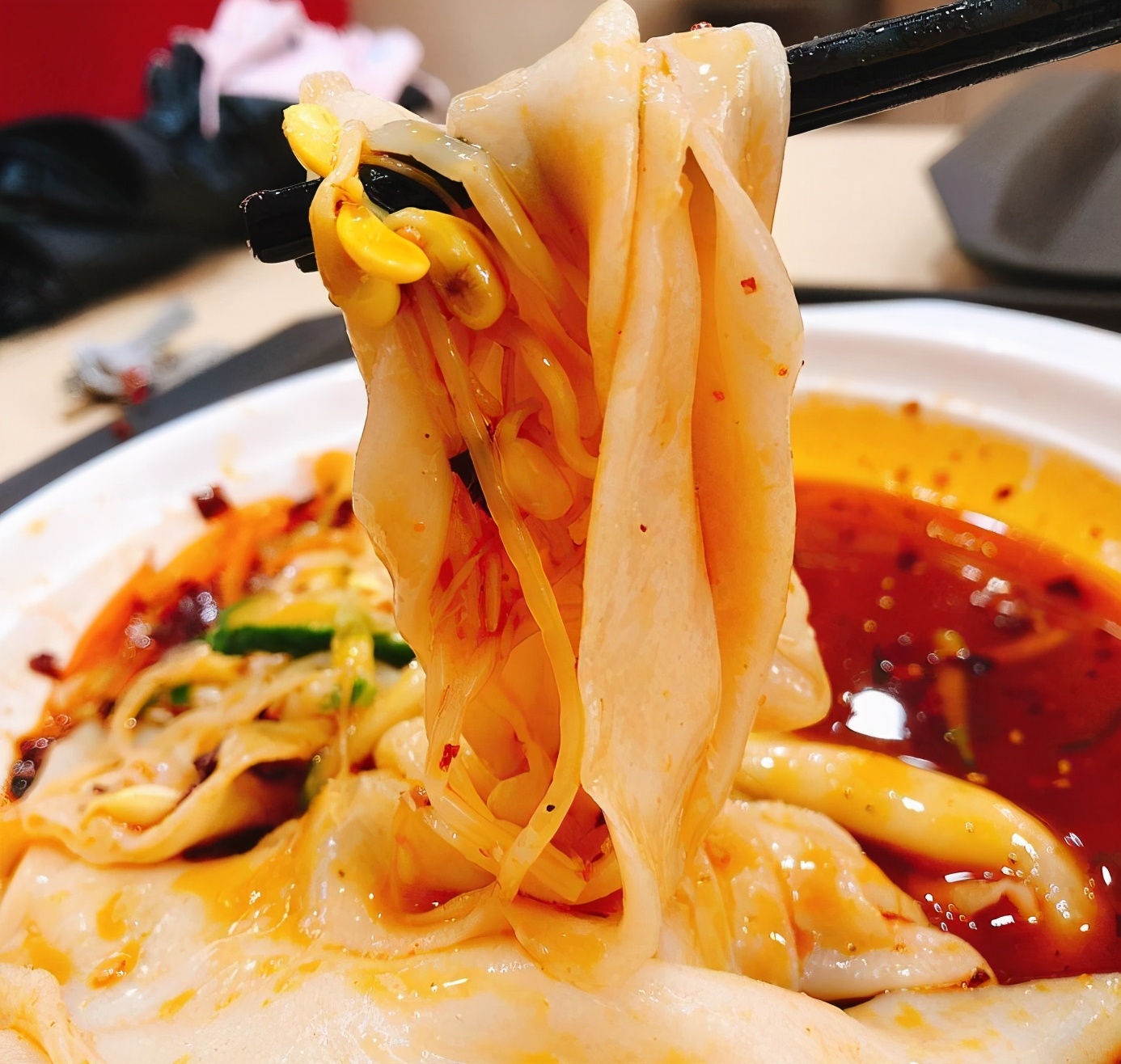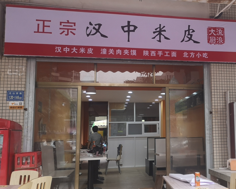 以“蓝长平二”为战略指导,通过在美团、饿了么上进行商家列表比对,以及自己走路进行路边调查,排除掉了几十种餐饮小吃品类,最终选定了“汉中米皮”+“老潼关肉夹馍”。