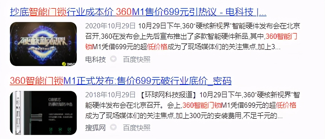 从中国网络家庭频道的报道来看,在小米、360等互联网企业进入智能门锁市场之前,该行业的价格底线一般在2000元左右。以著名的智能门锁品牌德xx为例。通过京东按照综合排名搜索,评价不错的产品价格基本都在两三千元以上,搞促销的时候最低可能会降到一千七八左右。