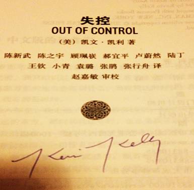 对凯文.凯利专访时,潘新拿了两本《失控》请他老人家签名,并将其中一本赠送给我。等书快递到,他告诉我,这就是当年我送给他的那本《失控》。人类的命运即将抵达终点,而这本书也完成了它的轮回。
