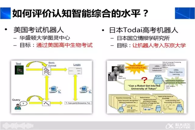 这展示了我们用这个技术可以做到的一方面。真正的挑战在什么地方呢?大家认为评价人类智能,比如小孩,大家都是考过来的,高考到底能够考多少分?美国和日本在做能够通过高考的机器人。