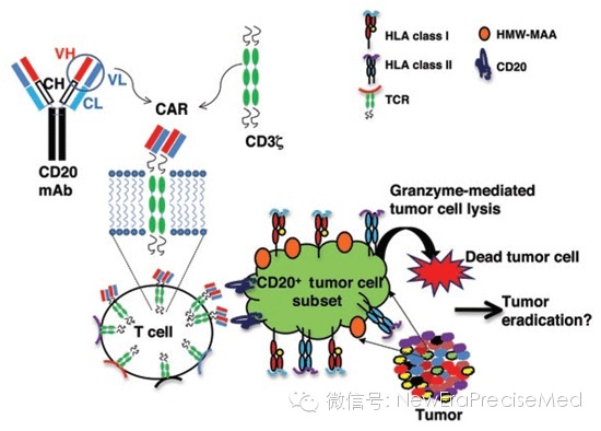 目前一项新的技术,称嵌合抗原受体(CAR),避免了这种限制。该技术使用编码人工、抗体样蛋白的基因,高度特异性的识别肿瘤细胞的表面抗原,而不需要相匹配的患者免疫类型。