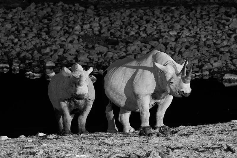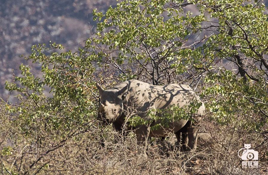 和沙漠象与旱地狮相比,在山地追踪黑犀的难度更大,因为它们特别警觉,极难被发现和接近。纳米比亚拥有非洲最大的处于“自由漫游”状态的野生黑犀种群,即可以自由迁徙,没有任何防护措施,也意味着它们完全暴露在偷猎者的枪口中。被世界自然保护联盟非洲犀牛专家小组评为世界上仅有的六个主要黑犀种群之一,极度濒危。目前,偷猎和黑市贩卖犀牛角依旧困扰着这个物种的生存。