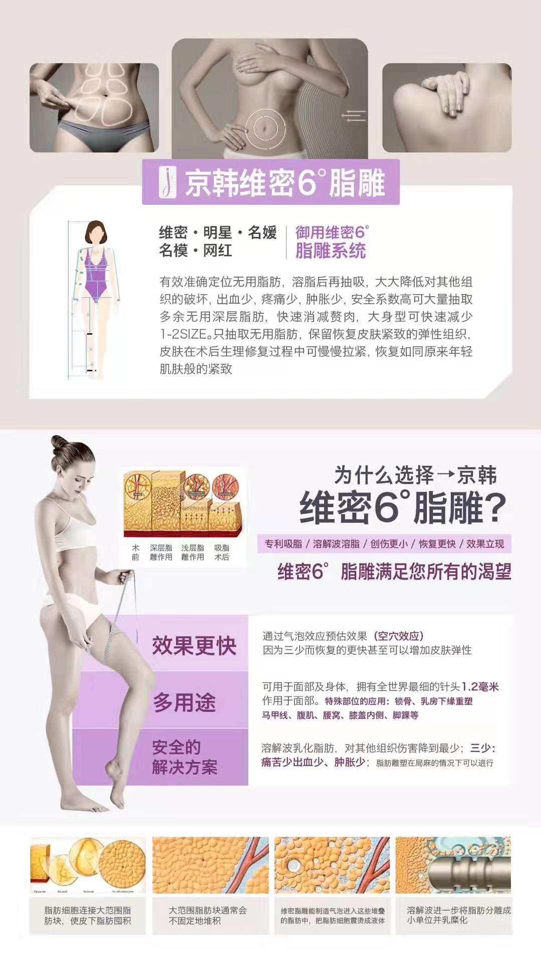 (维密6度脂雕修 复系统由北京脂肪移植修复专 科乔爱军专家与王沛森专家共同研发15项脂肪移植核心专利技术之一)维密脂雕修复系统 ,利用智能调控以及靶向精准消 脂技术,利用音波、射频、光能、负压、BTL仪器等技术精细定量 消除多余脂肪、渗 出组织液和体液,恢复皮下内环境平衡生态,同时刺激周围胶原蛋白 产生,减脂同时紧致提升皮肤 ,恢复修复后的 皮肤平滑度。维密脂雕可以对面部,身体的吸脂部位进行更精细的分层吸脂操作,手术采用超声波分 层碎 脂技术对 多余的脂肪细胞超声波粉碎成液体排出体外和吸收,具有恢复期更短,雕塑更精细,更可控的特点,是 目前最先进的 脂肪填充失败修复脂雕吸 溶脂技术。https://pic.wenwo.com/fimg/11247364685.jpg