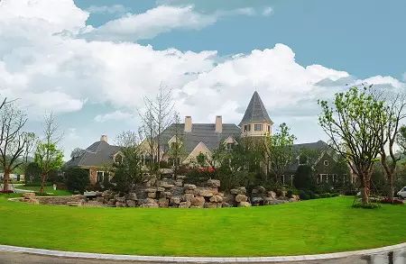 但已是本土别墅老大的九龙依云,也深知景观的重要性。在景观的打造上也丝毫不让。不同于龙湖的营销型景观打造的是,九龙依云的景观更是使用真山、真水、真材实料。同时聘请高手香港贝尔高林进行设计,做的也是层次变化多样,规划有林荫大道、高尔夫果岭、花园密林、旱溪湿地等几个景观体验区,同时邀请广州棕榈园林进行施工管理,从广东采购高水准黄蜡石,打造高水准的景观表现力,造价达到2000元/平米,可见也是颇费心思。