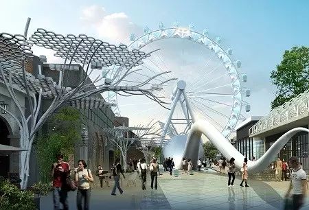 除了标杆美丽之外,摩天轮还有一个最大的功效是其对弱势空间客流引导。在购物中心高层设置摩天轮的规划,将客流向传统的弱势空间高层拉动,向下形成喷淋式动线,并对次高层提供充分的客流量。