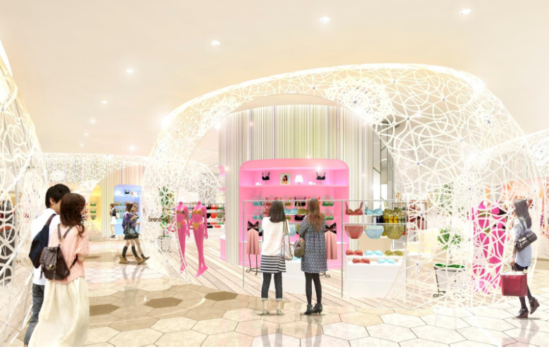 针对女性独特的购物心理特点,吸收传统百货品类集群的优势,选择盈利性高、且女性特点突出的品类——内衣、美妆,具有首创性地在购物中心内打造类百货品牌集合区。旨在强化同类消费品的集合效应,营造私密、唯美的购物氛围,提升女性消费者的购物体验。