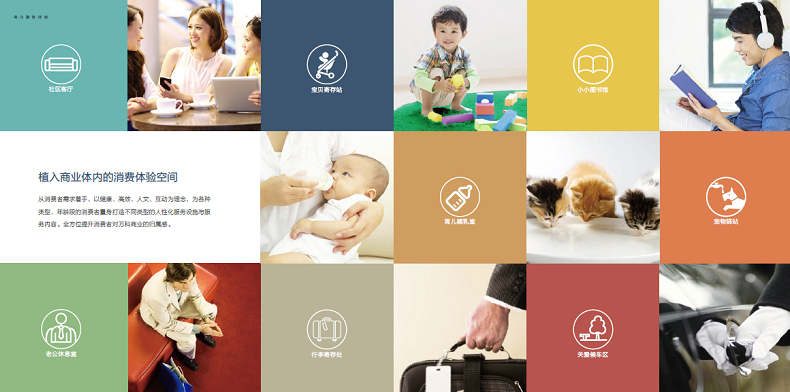 从实体来看,万科商业在其商业体系里,针对不同类型的消费客群,搭建了社区客厅、老公寄存室、宝贝寄托站、宝贝森林观察站、育儿分享区、PARTY FOR YOU、萌宠驿站、健康歩梯、Photo Spot、小小图书馆及儿童英语角等全方位的服务站,锁定全客群的服务。