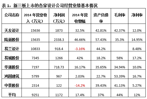 表1:新三板上市的各家设计公司经营业绩基本情况