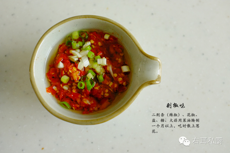 鲜椒味:自制辣椒酱(日后详述)、葱花。