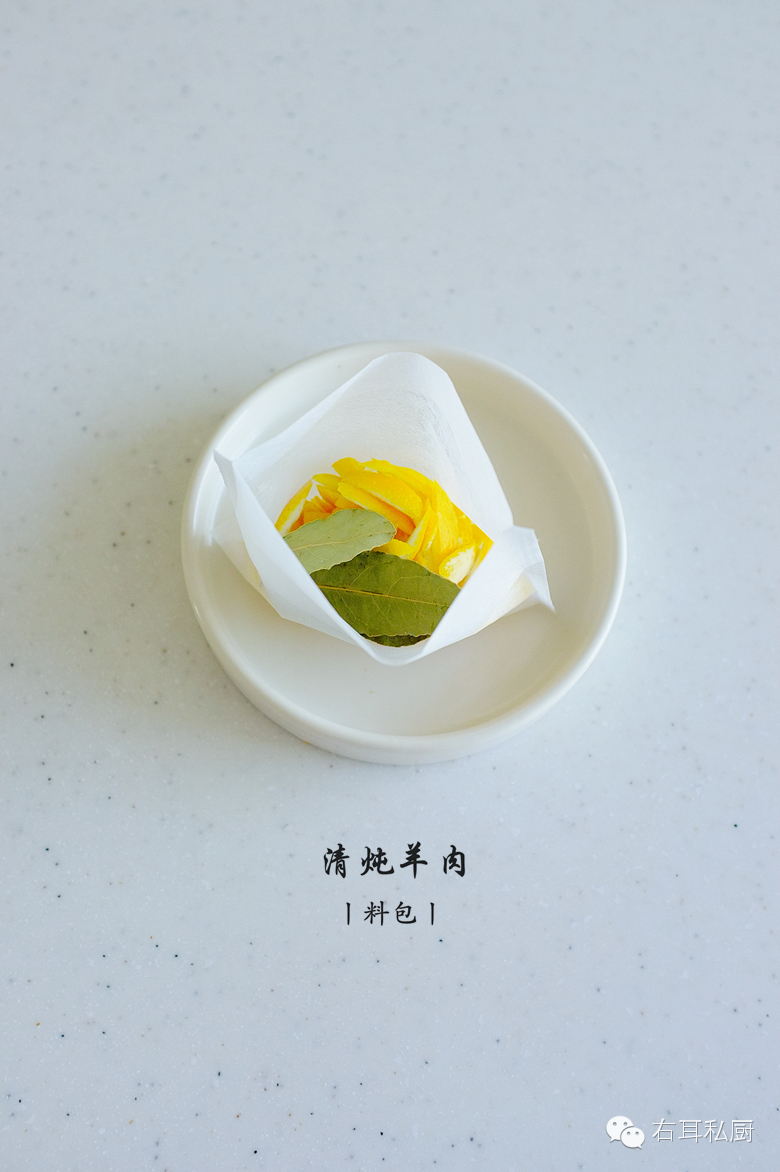 少到多少算少?仅两样:新鲜橙皮和香叶。正是吃橙的季节,将新鲜橙子的皮洗净切碎与两三片香叶一起放进炖料包,同羊肉炖煮两三个小时,肉和汤不仅毫无膻味,还有一股淡淡的橙香,这种橙香是用老陈皮炖不出来的味道。
