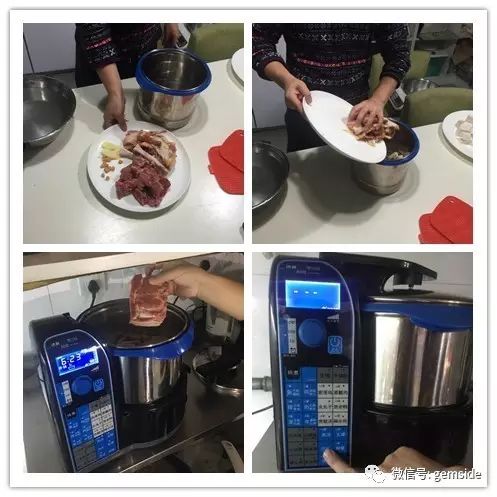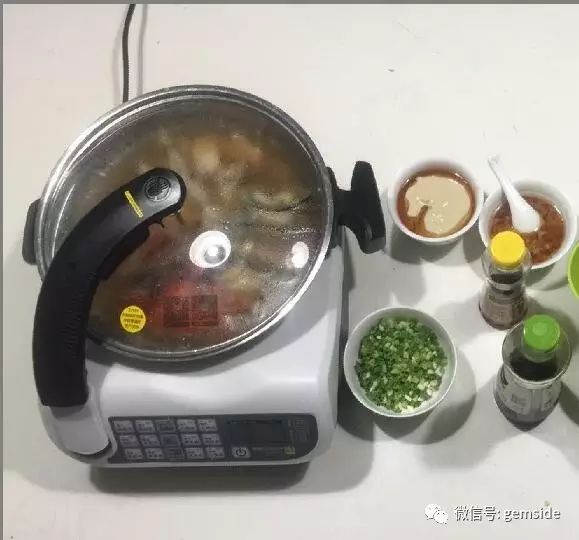 6、经过数小时的烹饪,汤里飘出浓浓的骨汤香味;烹饪结束后,把汤内的骨头捞出,将汤倒入盛有海鲜及蔬菜的锅里,然后一家人就可以围着吃了。如果吃的过程中汤凉了,可以开启手动功能进行加热。