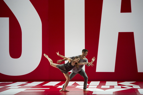 洛杉矶舞蹈工坊一直都讲求与各类艺术家的合作,形成跨界而多样的风格。在本杰明•米派德的作品《倒影》中,芭芭拉•克鲁格对服装与舞台装置进行设计,将她的“克鲁格风格”全面地挪移到了舞台上。