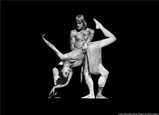 1976年4月30日,英国芭蕾演员Monica Mason与俄罗斯演员Rudolf Nureyev在大都会歌剧院与俄罗斯莫斯科大剧院芭蕾舞团一起演出。