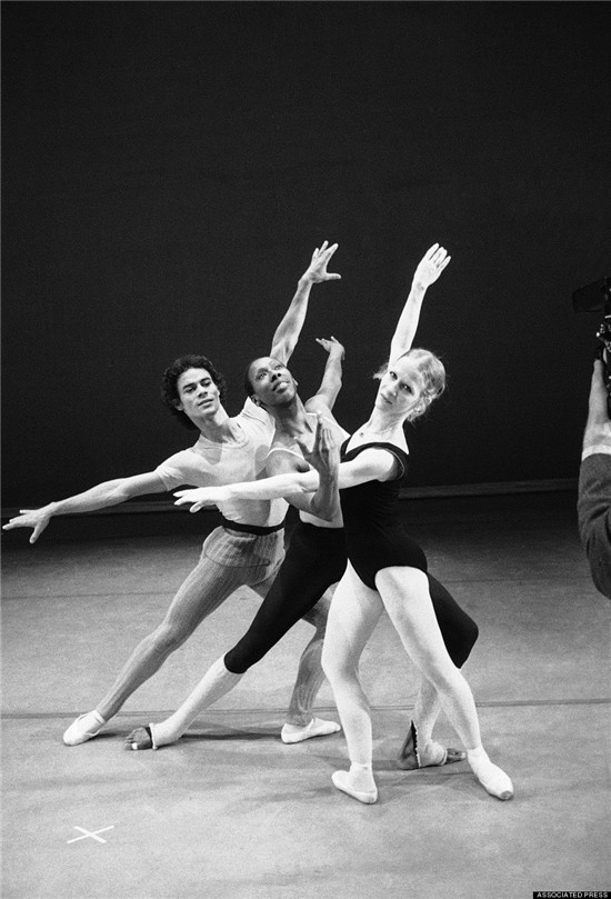 1977年5月的一个周二,古巴舞蹈演员Lazaro Carreno(左)、Maria Llorente(右)和Judith Jamison(中)在纽约一同演出。美国编舞家Alvin Ailey为两位来自古巴国家芭蕾舞团的演员量身定制芭蕾舞剧。