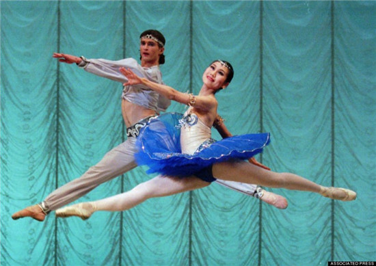 1996年1月31日,乌克兰国家剧院的明星Takita Shinoby(日本)和Gennady Zhalo演出巴黎舞剧《舞姬》中的一段双人舞。