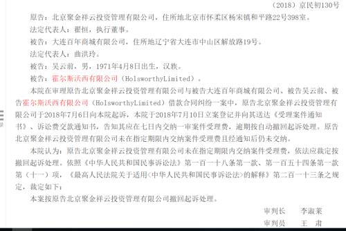 不过,2022年3月25日,大连市中级人民法院对此案作出裁定:不予受理之江新实业有限公司对大连百年商城有限公司的破产重整申请。