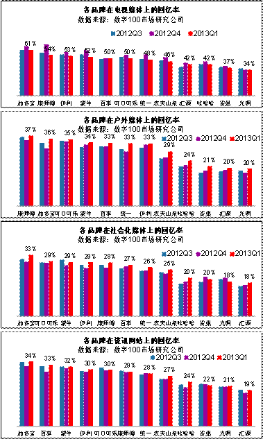 三、饮品品牌媒介表现:加多宝登顶广告回忆率
