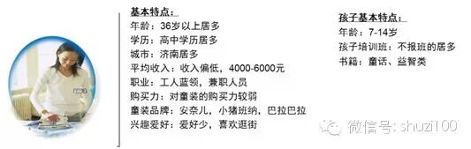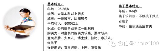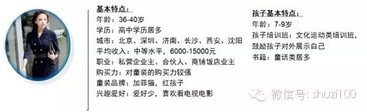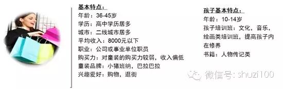 有很强的家庭观念,关注饮食和健康,但对生活品质的要求较低;有阅读平面信息的习惯,网络应用少;消费较为谨慎,几乎没有网购的习惯;对童装的购买方面,注重漂亮、能体现孩子童趣的风格