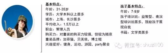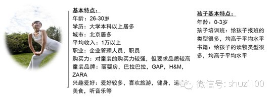 在生活和工作中很注重细节,看重生活品质,收入较高,找个理由就会给孩子买衣服,关注饮食和健康,不关注平面信息,对广告时尚的依赖度低,爱好广泛,对儿童的教育上,给孩子报班的类型很多,对于童装的选择,总是希望给孩子最好的,让孩子感觉更舒服更无拘无束,并被大多数人欣赏和喜欢,希望能够获得外界的认可.
