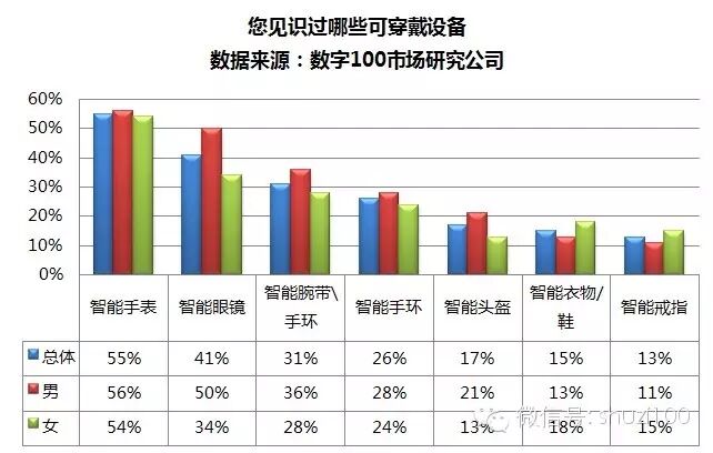 1:以电子产品形式出现的可穿戴设备,更加容易被男性群体所感知。只是现在依然比较小众