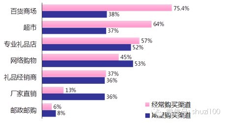 图:购买礼品的渠道和期望的渠道