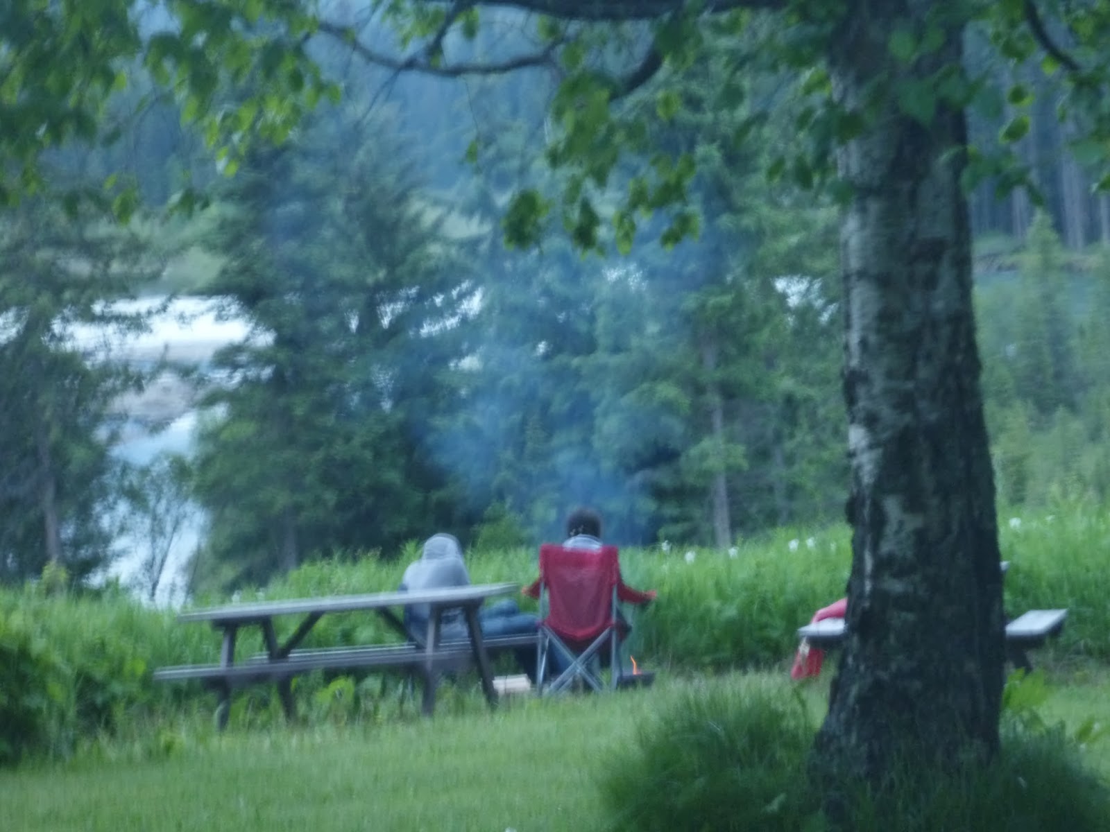 5小时真是眨眼功夫都没吹够就到了Mount Robson Lodge,很方便紧挨着16号公路,进去登记观察形势,还有一对恋人捷足先登占据了我们可以烧篝火之地,也罢。