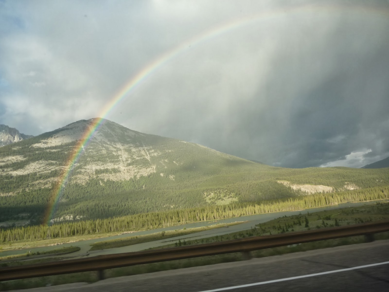 不过老天还是给我们老爸们面子的,雨过天晴还好大的彩虹,可惜在车里相机照不全只能一半一半,第一次看见整个拱桥一般的彩虹。