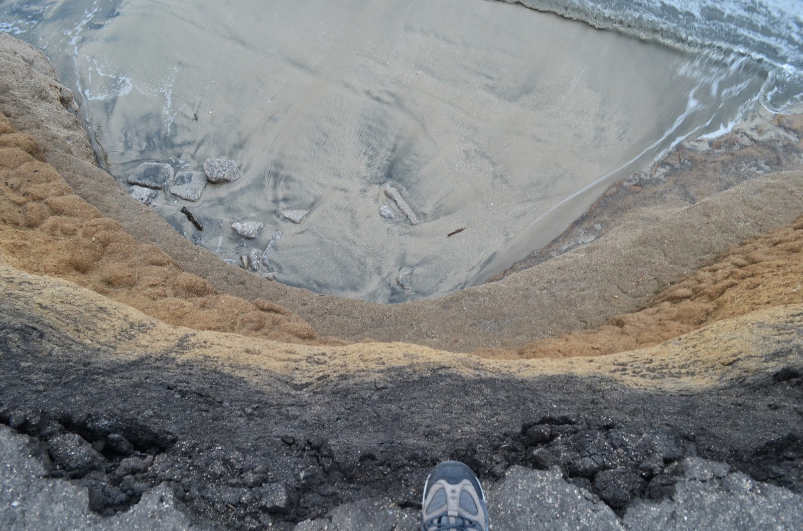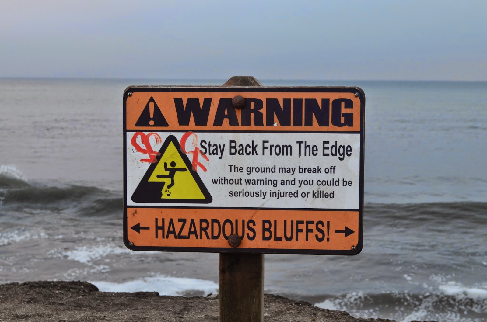 海潮孜孜不倦拍打海岸,每时每刻侵蚀着地土,似乎在向月亮证实着永不改变的忠贞。只见岸边招牌警告行人,蓝马不由心起,赶紧在招牌下伸脚来张特写,心中琢磨:不知何时这海浪便冲到公路上?肯定不在卤家有生之年了,嗟乎!