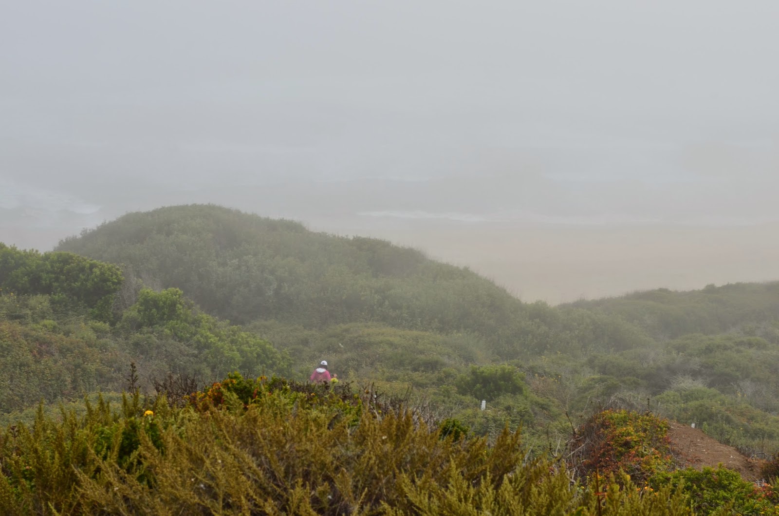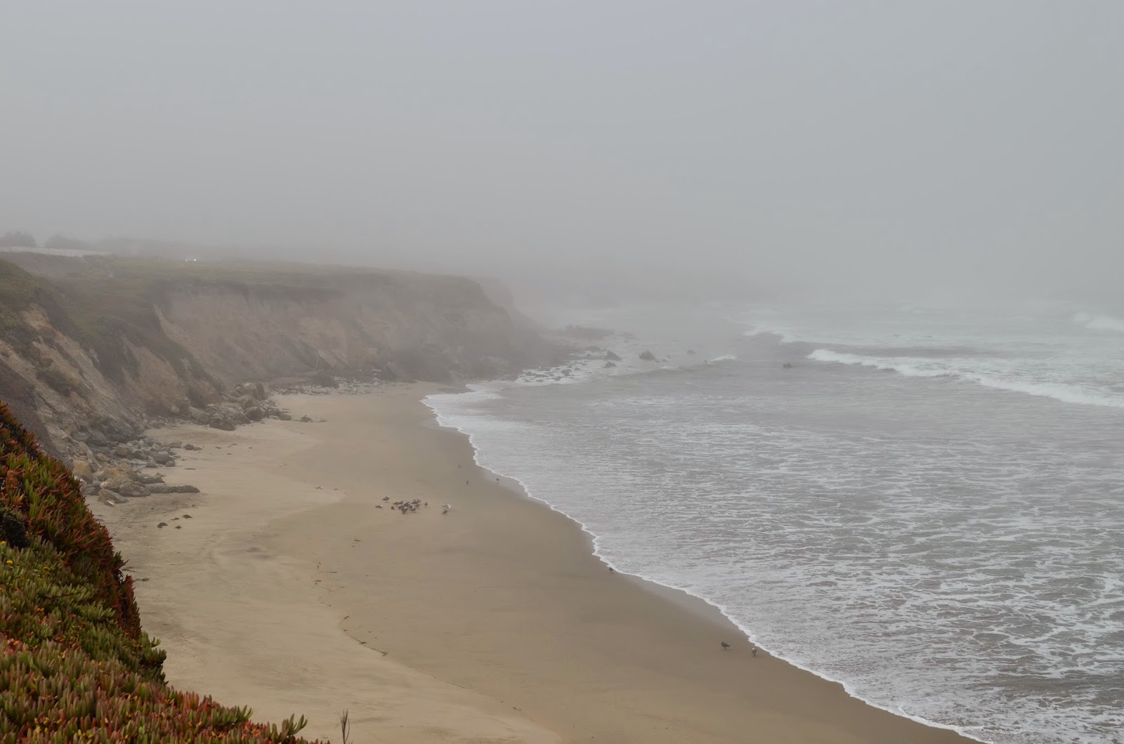 此番南加州之行大领一再嘱咐放松安全舒适为主,随意逍遥不可赶时间,如有遗漏之优胜美景美地下次再来。蓝马调好目的地圣塔克鲁兹海滨路(Santa Cruz Beach Broadwalk):“你等要停尽管招呼,圣塔克鲁兹倒也不远。”话音刚落,来到一片绿葱葱的热带植物,植物密布但后面的海浪之声此起彼伏,“停下来看看吧。。。”大领发话,蓝马只见此处并非Vista Point啊,“人少之处清静。。。”大领话毕急忙下车窜将出去。蓝马把车停好出来只见大领已三丈开外,棉衣们穿着拖鞋尾随。