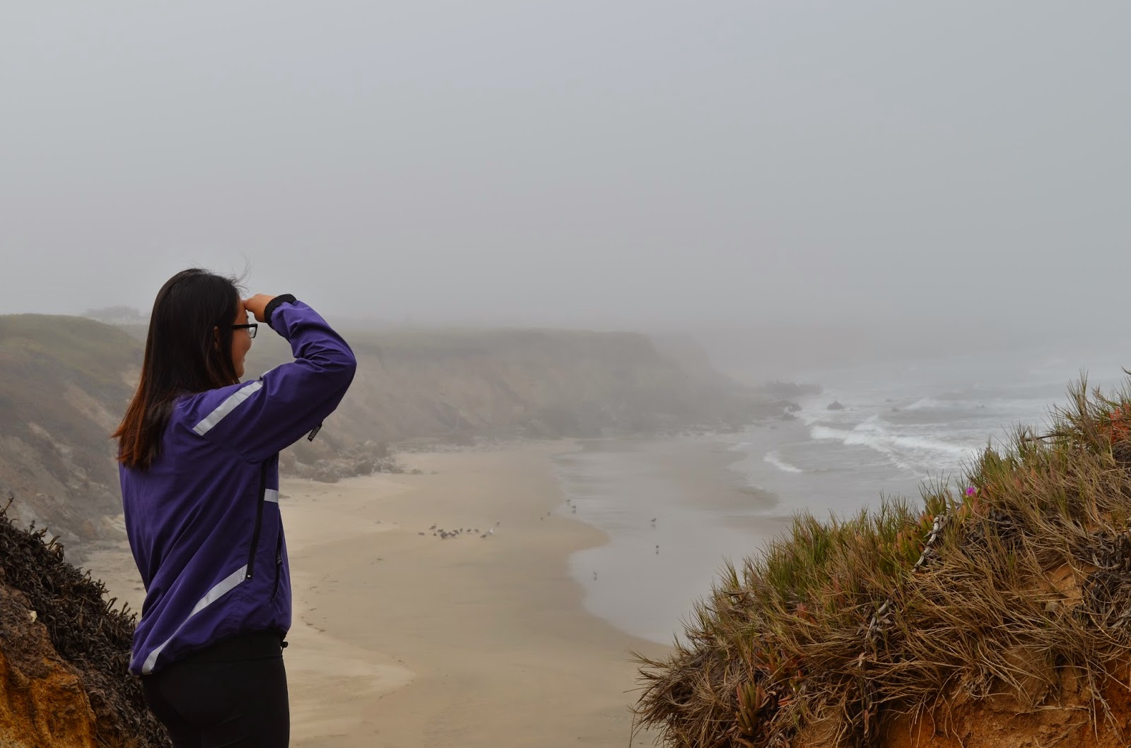 蒙特瑞湾北岸小镇Santa Cruz, 南岸Monterey镇。一号公路确实要从北往南开,右边就是一览无余之大海,只是开车之人不能尽情享受,要到Vista Point停下来看。所谓Vista Point就是瞭望角,高速公路旁开出一块弧形地带游人可下车观景拍照。如果你从南往上开停车就要左拐进瞭望角甚是不便。刚上一号大道不久大领欣然:“海的味道已在鼻中,空气如此湿润。。。”