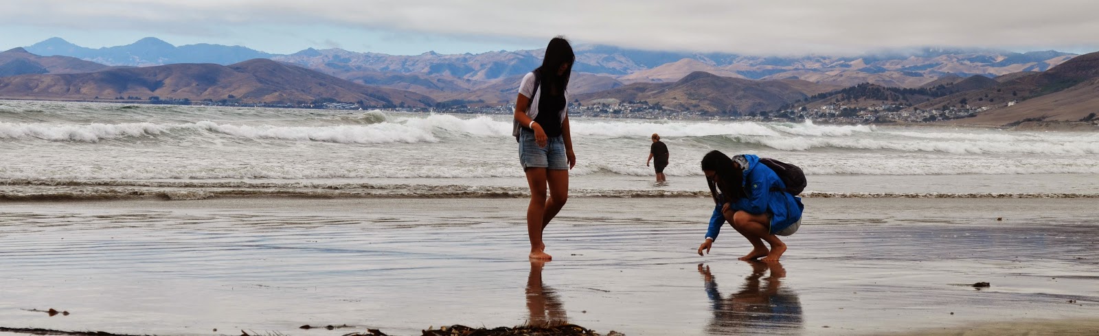 Morro湾著名的就是那块大圆石头,1769年西班牙的传教探险士Juan Crespi在日记里记载:“我们看见一块巨大石头海中立起。。。” Morro乃西(板牙)语,海中之石头。大领看见海又狂欢撩开脚丫疾走:“尔等可随便闲逛,我去去就来。”郁闷,好在蓝马有相机胡乱照一气,大小棉袄们在沙滩上捡东西。此次西游路见众多冲浪爱好者蓝马甚是羡慕心中遗憾,虽然也玩过一二次,如今年纪大了,也许退休能到某处海岛沙滩?