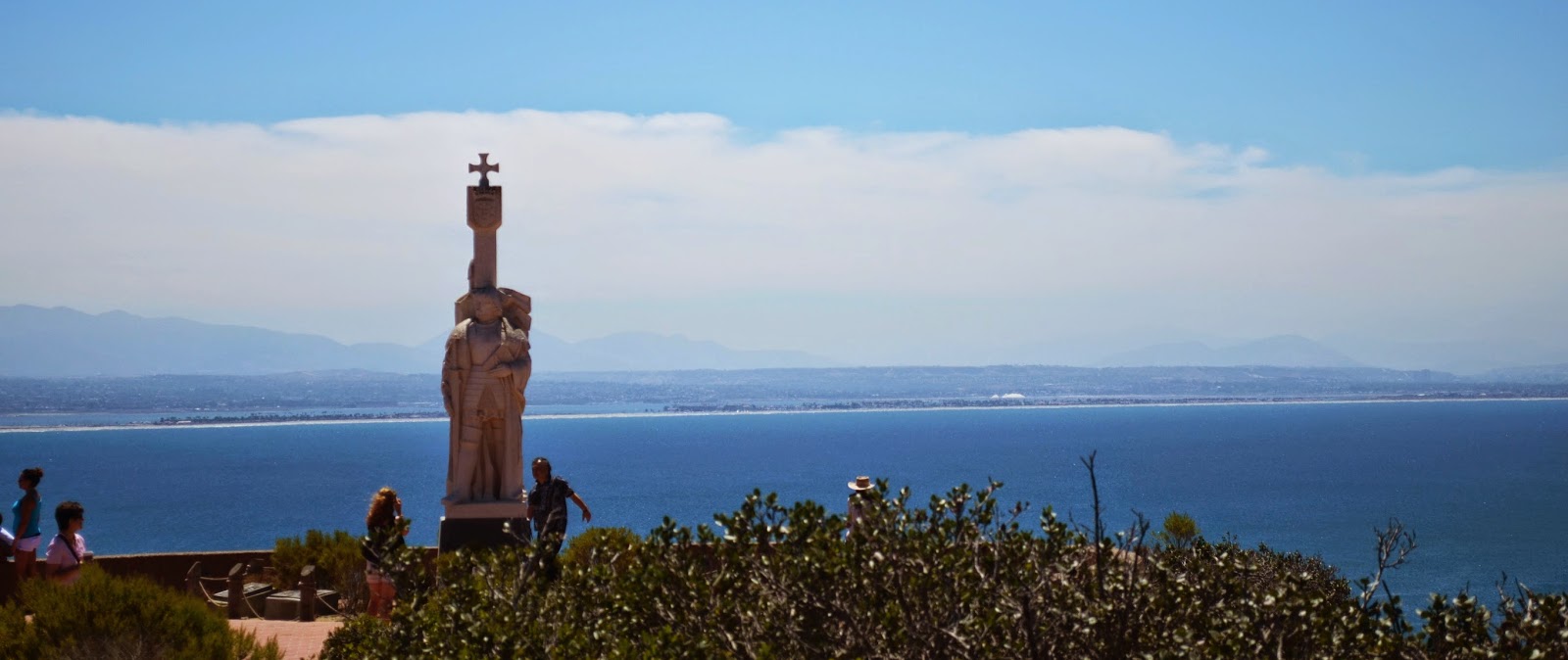 次日第一站就是圣地亚哥必去之地-老马之巅,哈哈,Point Loma。历史不可以忘记,1542年葡萄牙航海家Cabrillo在此首次踏上北美西岸,公园有个国家纪念碑(National Monument)因此得名。Cabrillo者,葡萄牙牛人也,但是以西班牙的名义出航,可想当时的西班牙海军多么的无敌!开车两侧都是海,快到公园大门时候路的两旁一大片墓地,传说二战的英烈们长眠于此。到了公园众人直奔纪念碑,这里地势比较高可以俯瞰圣地亚哥downtown和科罗拉多岛的美国海军基地,还有飞机巡逻艇游曳着似乎对付老莫的毒品走私?