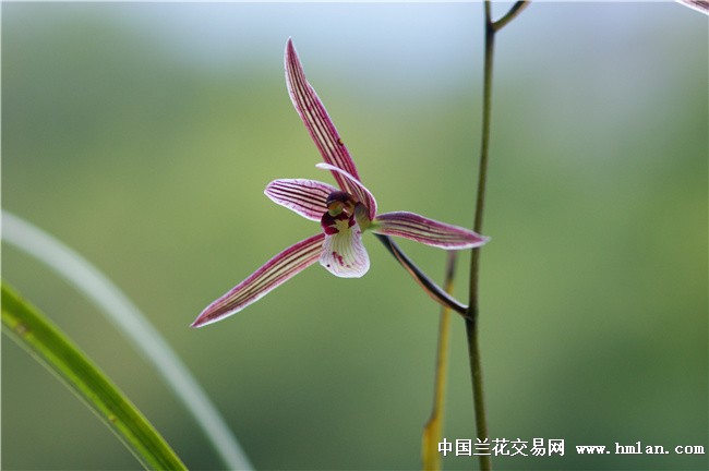 今年刚下山的细叶寒兰,大花型,圆舌,条纹紫红花,花已开一个多月,老花了。